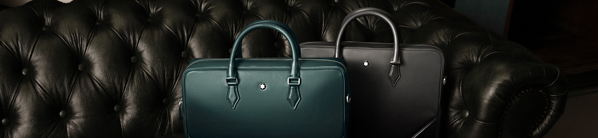 A coleção Meisterstück incorpora, em couro liso brilhante, um efeito degradê; partindo da escuridão profunda da tinta Mystery Black e alcançando iluminado topo em tons de Burgundy Red, British Green, Smoky Blue e Forged Iron.